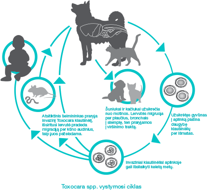 Šunų ir kačių toksokarozė (Paveikslėlis: gyvenimo ciklas)
